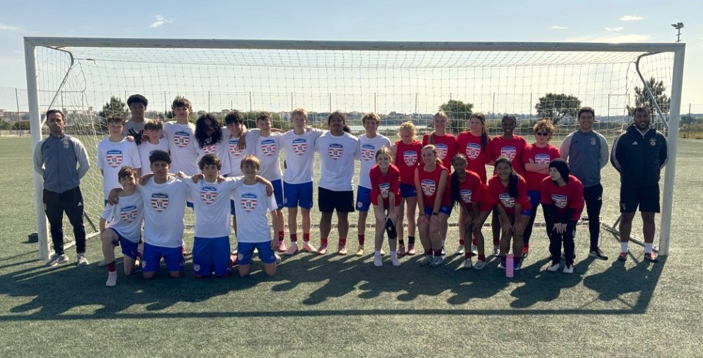 Both the boys’ and girls’ teams enjoyed daily training, which consisted of small-sided games and technical sessions, and also got professional training experiences with Benefica Academy and CF Belenesenses. Each team had three games against local Lisbon teams with the boys finishing 1-1-1, and the girls going undefeated 3-0.